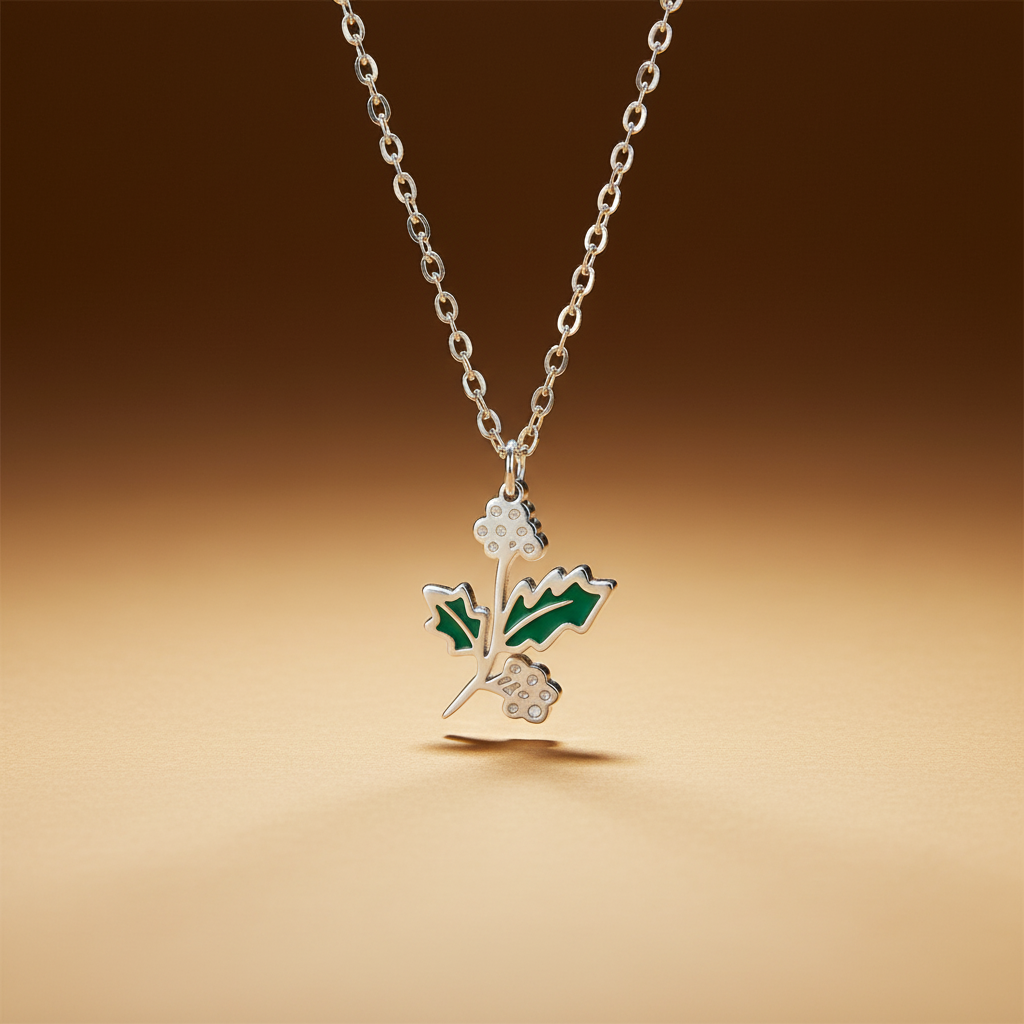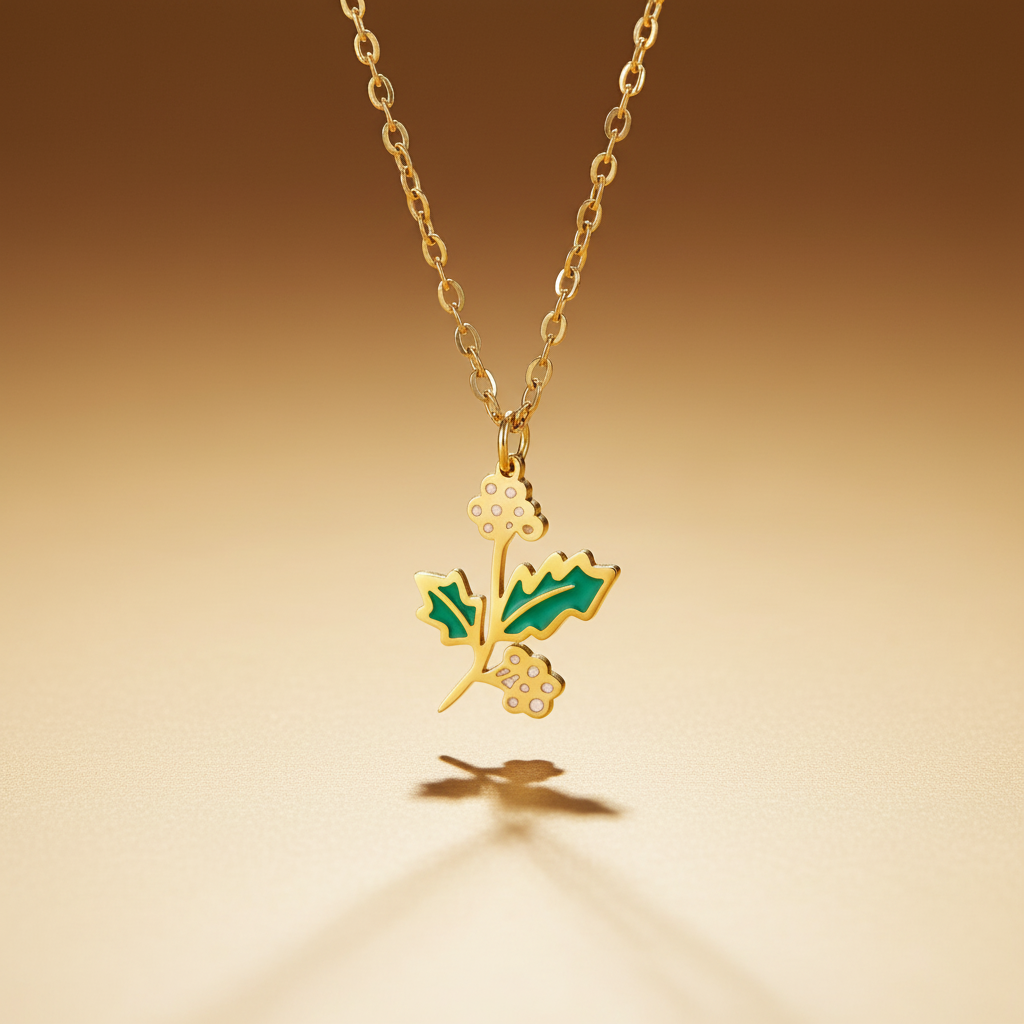 The holly necklace honors protectors and homemakers. For the one who makes everywhere feel like home.